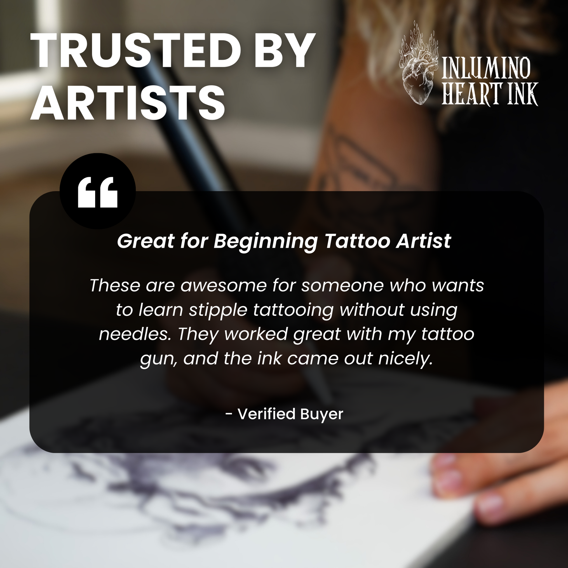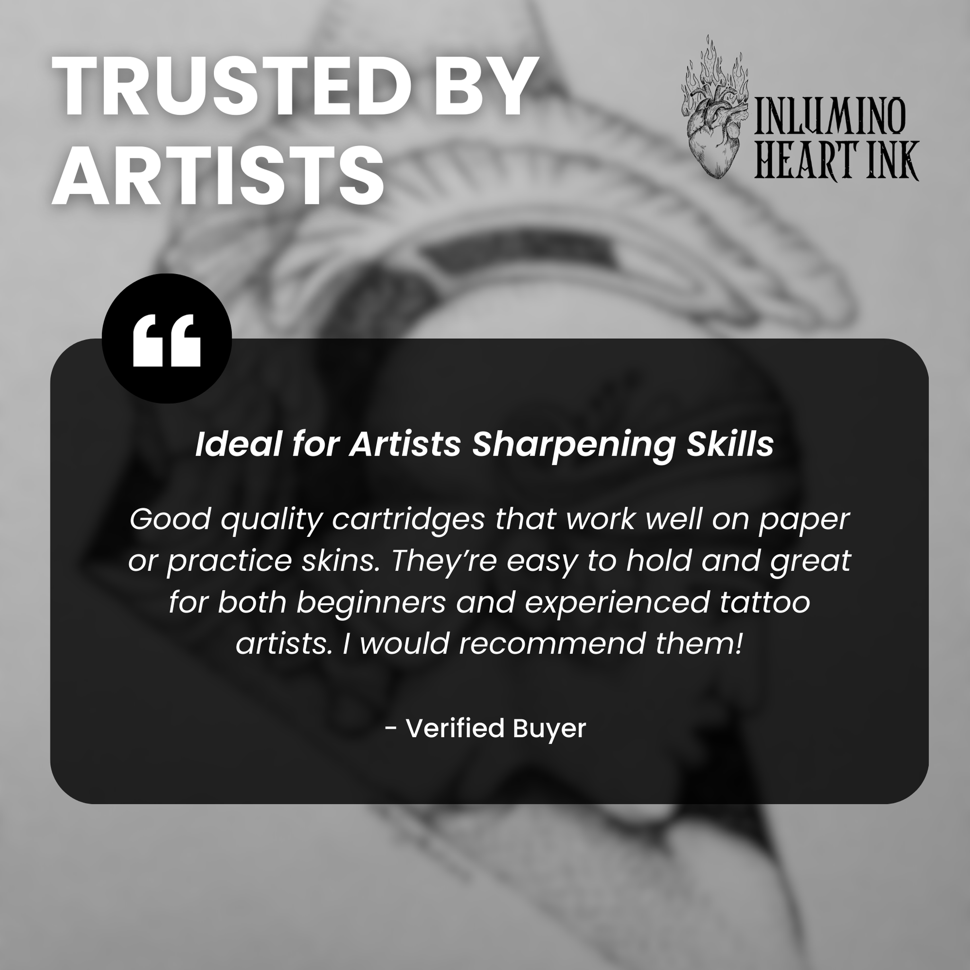 Take your skills to the next level with these .5mm ballpoint cartridges, designed for dotwork, stippling, and fine-line practice. Whether you’re just starting out or perfecting your technique, these long-lasting cartridges are built to support focused, high-quality tattoo training.