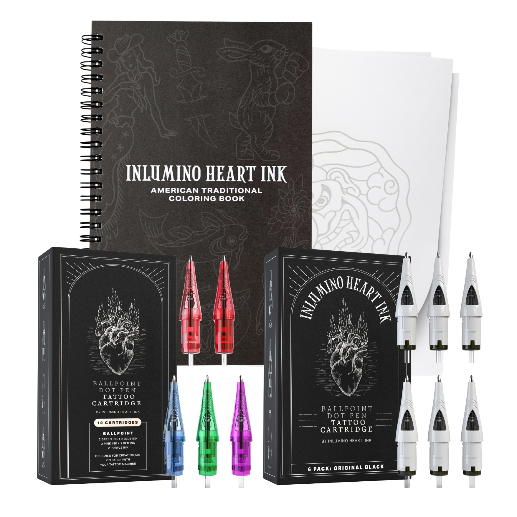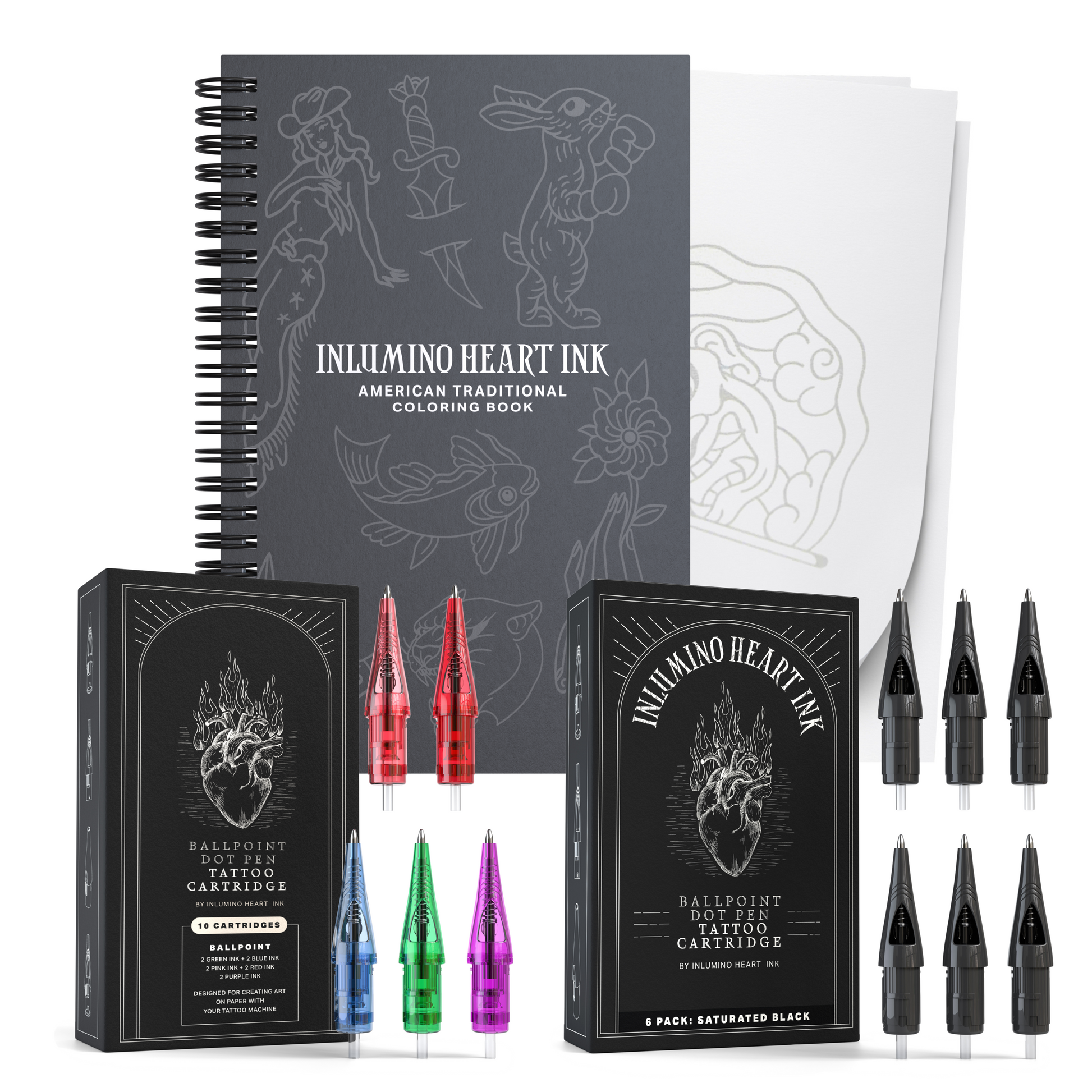 This kit includes our cartridges and coloring book, allowing you to create, shade, color and stipple on 40 different original designs to choose from. A $65 value for $52. What's in the set: