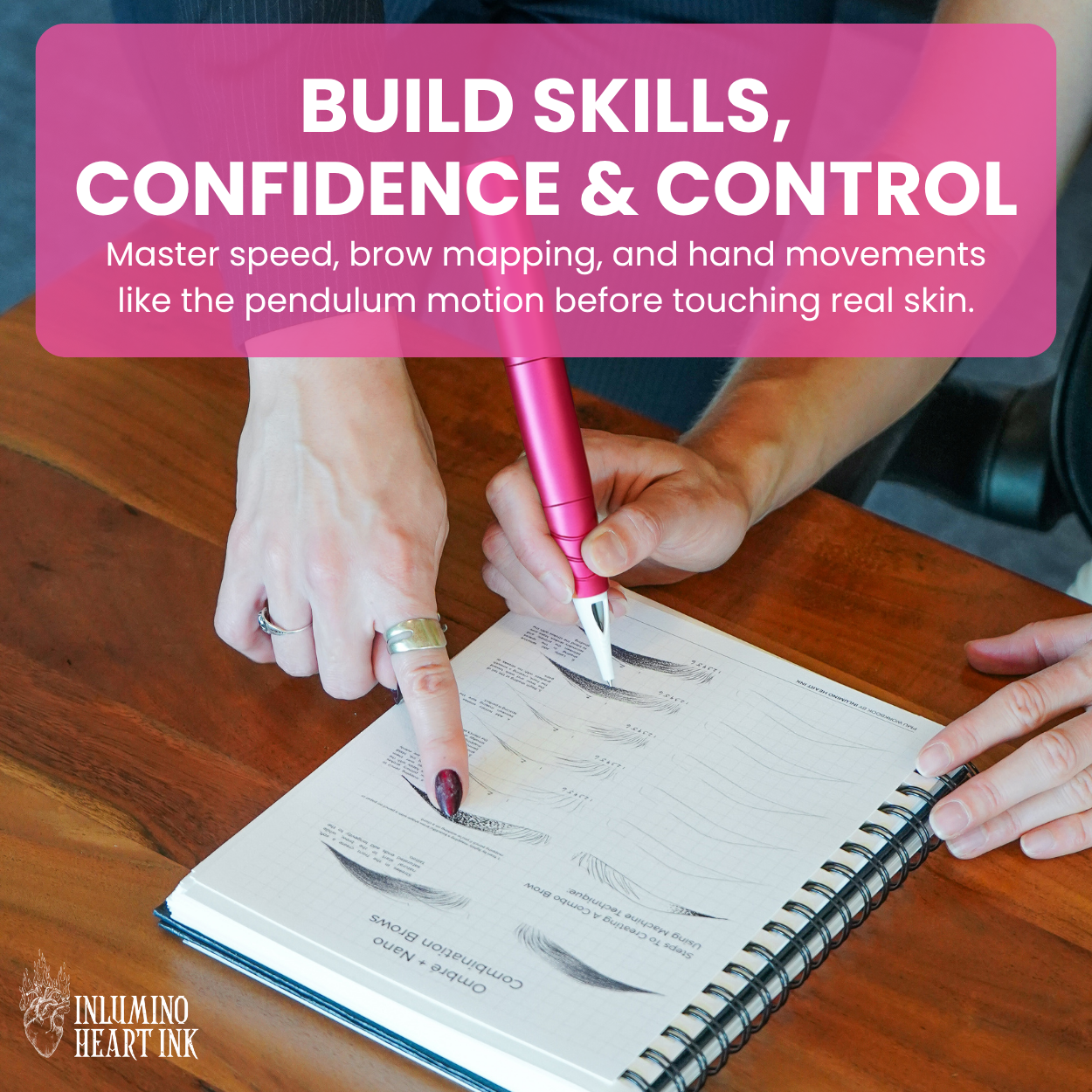 This workbook is designed for students, teachers, and practicing artists who want a structured way to learn and refine their craft. With curriculum, exercises, and worksheets, it works seamlessly with our Ballpoint Pen Cartridges and Electric Pro PMU Edition—so you can build muscle memory while studying the fundamentals.