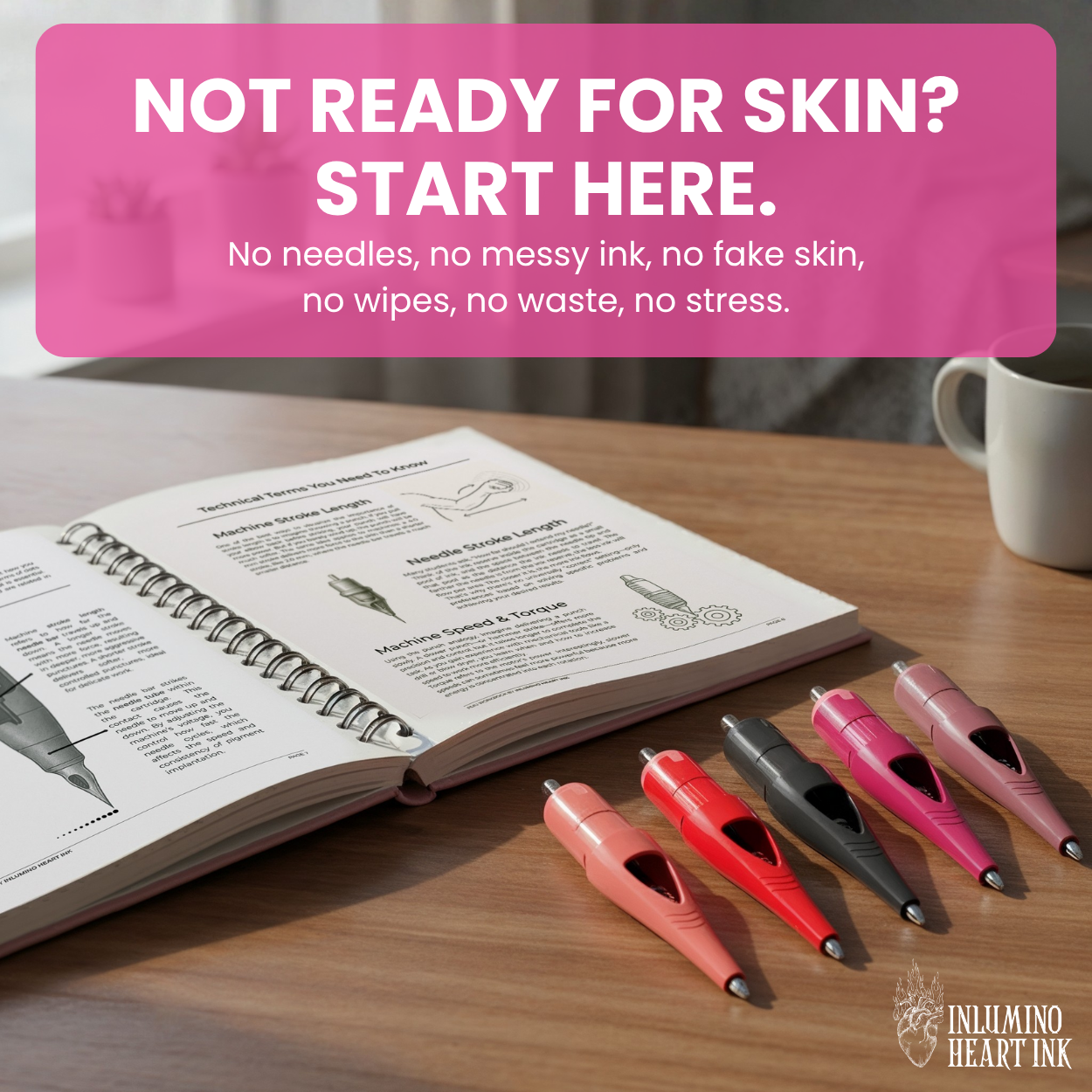Ink-free practice on paper, no needles or mess