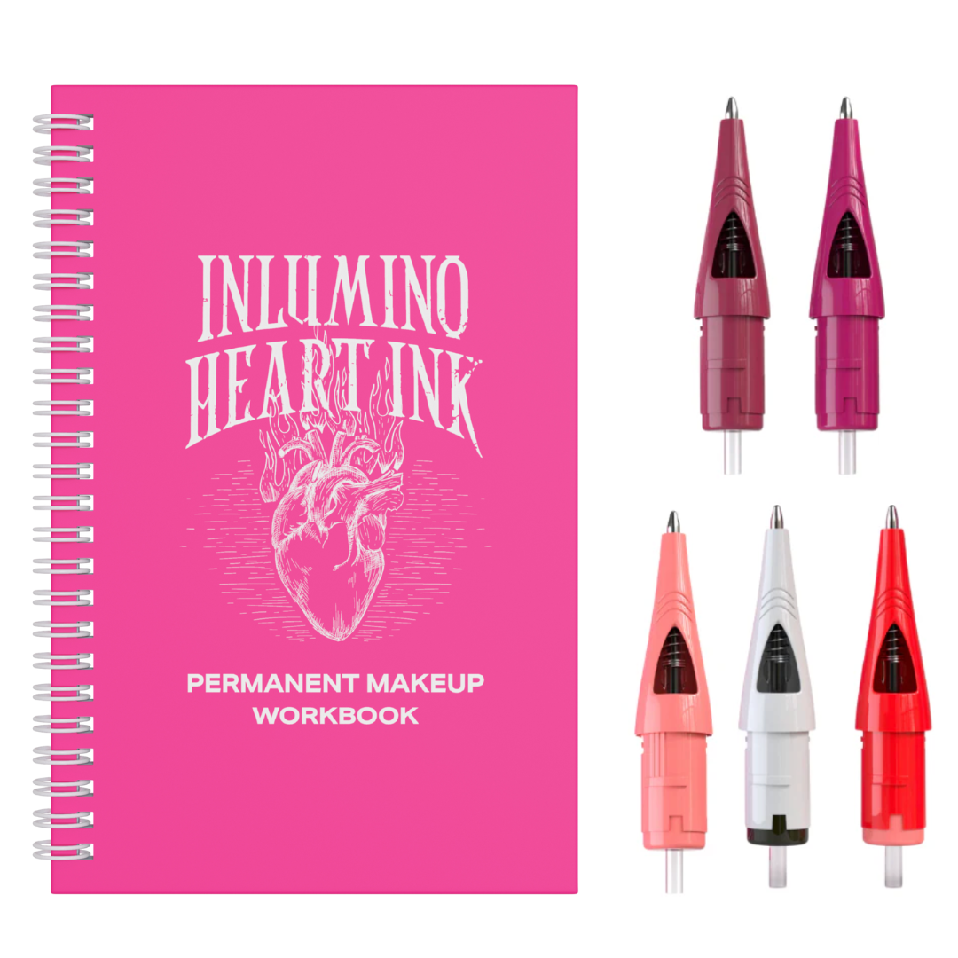 Take your PMU training to the next level with this focused practice bundle. Featuring the Permanent Makeup Workbook (55 pages) and a 10-pack of PMU Ballpoint Cartridges, this set is designed for artists who want to refine their technique with the same precision and flow of a PMU machine—without using needles or ink.