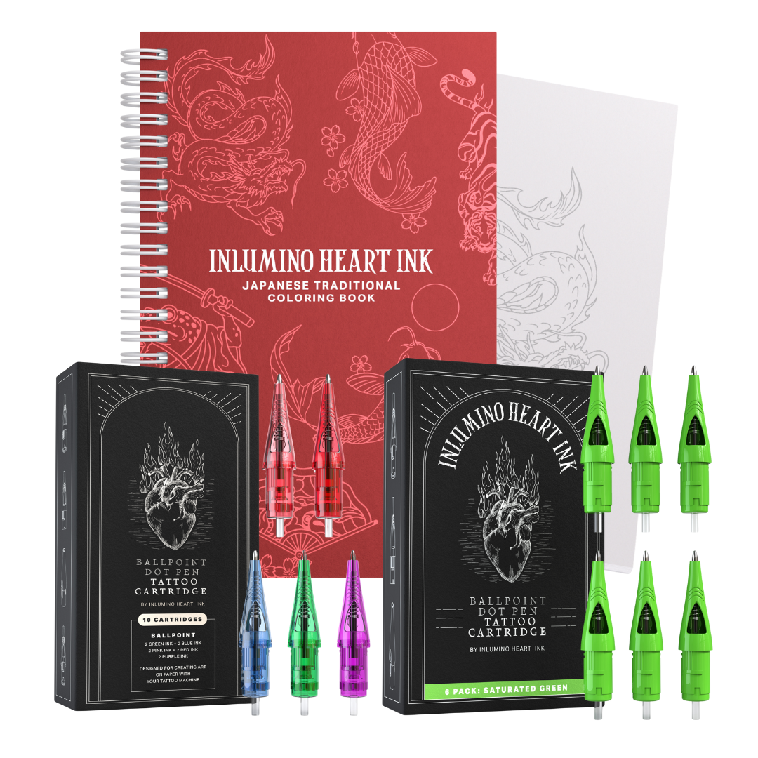 This bundle combines our patented cartridges with our Japanese Traditional Coloring Book, giving you 40 original designs to create, shade, color, and stipple with precision on paper.